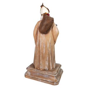Antique St. Nicholas by Bethany Lowe Designs is a striking tribute to old-world Christmas tradition, rich in detail and presence. Dressed in a bronze-colored robe, he carries an air of history and reverence that feels rooted in centuries of holiday storytelling. His white and gold priest hat adds contrast and refinement, drawing the eye upward and reinforcing his role as a timeless guardian of the season. Every element of his attire feels intentional, from the muted metallic tones to the carefully sculpted folds that give the figure depth and character.