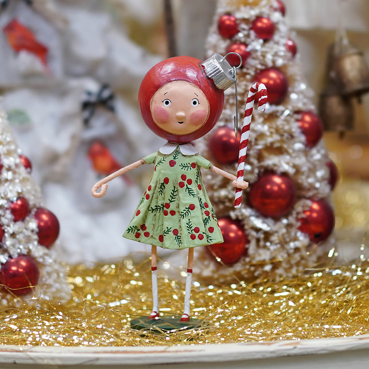 Deck the halls—and yourself! Betsy Bauble by Lori Mitchell is here to prove that holiday decorating is a full-body experience. Dressed in a festive green dress adorned with holly berries, this cheerful little girl is fully committed to the Christmas spirit. And in case there was any doubt, she’s literally wearing it—a shiny red ornament encircles her head like the grandest bauble on the tree!