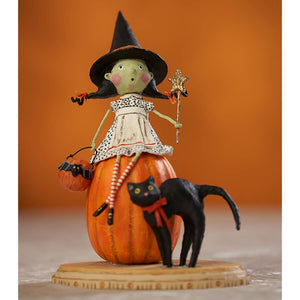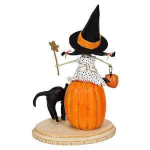 In this modern age, the old-fashioned witchy magic seemed lost and irrelevant to her. All the Bewitched figure by Lori Mitchell for ESC & Company truly desired was to prepare herself for the most glorious night of trick-or-treating. Her longing was simple—to fill her magical pumpkin bucket with an abundance of sweet treats.