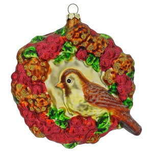 Ideal for bird lovers and those who appreciate finely crafted ornaments, the Bird in Wreath Ornament makes a thoughtful gift for family and friends. The adorable bird, with its lifelike detail and charming presence, will bring a smile to anyone's face.
