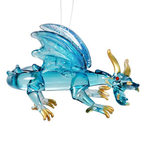 Dive into a world of wonder with this brilliant blue spectacle! The Blue Mini Flying Dragon Ornament is ready to swoop into your festivities, casting an aura of mystery and awe. Made from shimmering glass, it sparkles with the depth of oceans and the expanse of clear skies.