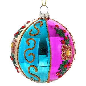 Dazzle your holiday décor with a touch of vintage enchantment—the Blue & Purple Floral Design Indent Ball Witch Eye Ornament by RAZ Imports is a showstopper that turns every branch into a spellbinding display. Shimmering in shades of blue, pink, and gold, this ornament captures the nostalgic glamour of mid-century glass ornaments with a modern twist of color and shine.