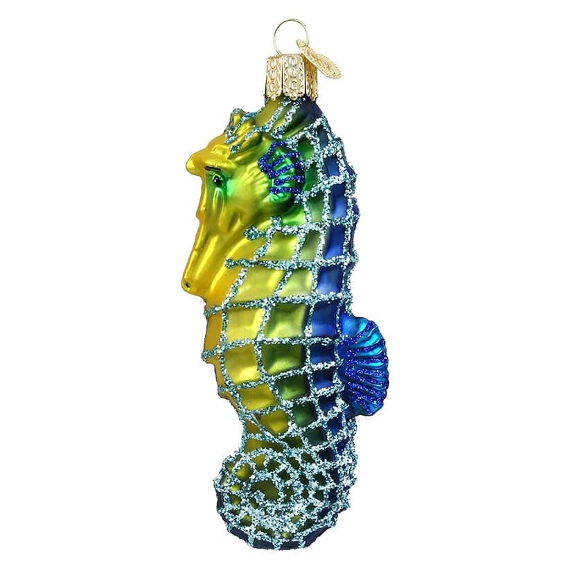Glide into the holidays with this mesmerizing Blue Sea Horse Ornament from Old World Christmas, where the mystical meets the merry. At a full 5 inches, this glass creation brings a slice of oceanic charm right to your tree, celebrating a creature that has sparked imagination and wonder through the ages.