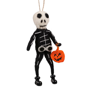 Bowlegged Skeleton Halloween Character Felt Ornament