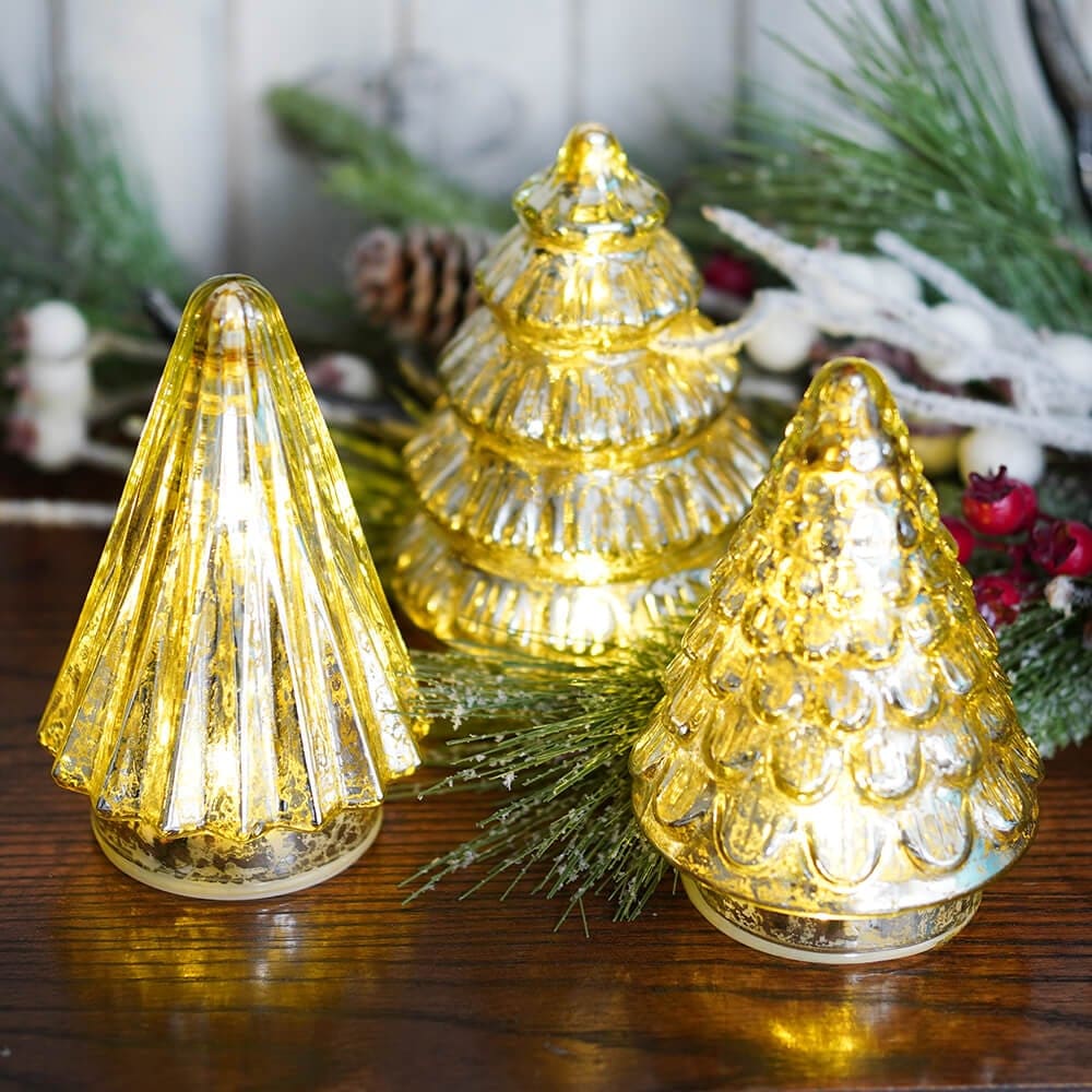 The set's trio design allows for versatility in decoration, whether you choose to cluster them for impact or place them separately to create a uniform theme across different rooms. Their stature is perfect for display on a mantle, a bookshelf, or as an illuminating addition to a festive tablescape, adding an air of sophistication to your holiday gatherings.