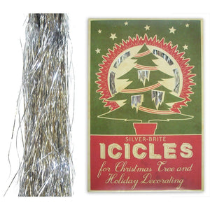 Crafted with the magic touch of Bethany Lowe Designs, this box of tinsel icicles is more than just a festive accessory; it's a statement piece for those who believe that holiday decor should be as fabulous as the celebrations themselves. It's tinsel with flair, silver with sass, and gold with a touch of ""wow.""