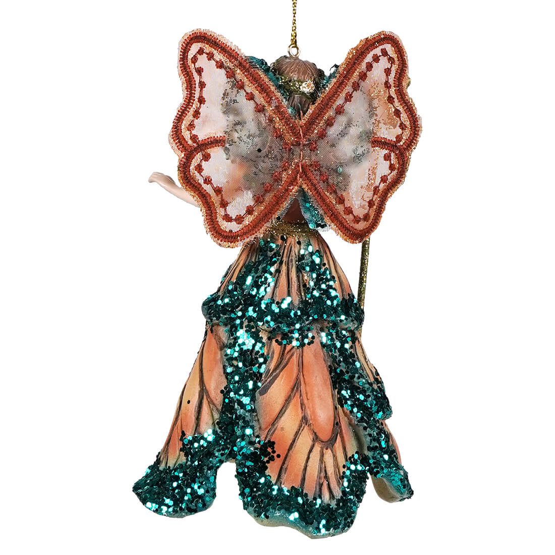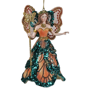 This ornament works well with nature-themed decor, jewel tones, or any holiday setting that brings in natural textures and color. The butterfly-inspired elements make it easy to pair with floral or woodland pieces, or it can stand on its own as a detailed figure piece.