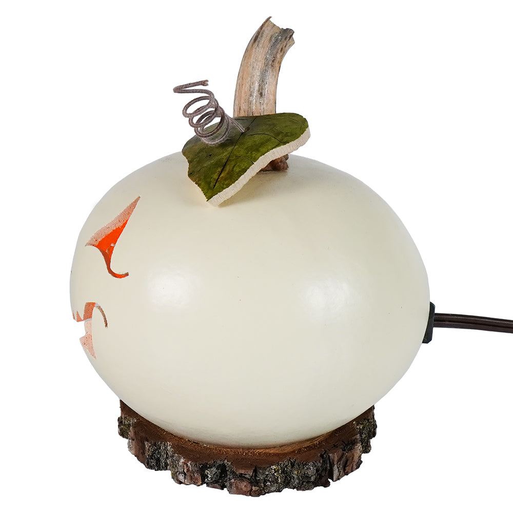 Meet Cannon, the Lighted Jack-O'-Lantern Gourd by Meadowbrooke Gourds—he’s white, bright, and ready to light up your fright night with ghostly charm and gourd old-fashioned flair. Handcrafted in the USA and equipped with a 72" light cord and orange bulb, Cannon is no ordinary pumpkin—he’s the stylish cousin of the classic jack-o'-lantern who traded in his orange glow for a chic, spooky makeover.