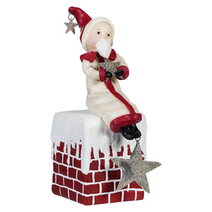 Display Chimney Sittin' Santa in your home to add a touch of holiday magic to your Christmas decor. Let him remind you of the joy of giving and the warmth of the holiday season as he sits atop the chimney, ready to bring cheer and happiness to all.