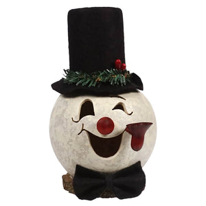 The Clyde – Miniature Snowman Gourd by Meadowbrooke Gourds may be small in size, but he makes a big statement. His classic snowman face is topped with a sharp black top hat, complete with a sprig of holly for that festive finishing touch. With a black bowtie tied neatly under his chin, Clyde is all about timeless holiday charm.