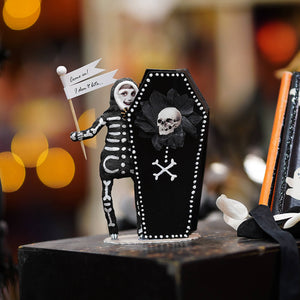 Perfect for those who love their décor with a dose of dark humor, this coffin cutie makes a fun conversation starter. Equal parts macabre and merry, he’s a reminder that not every skeleton belongs in the closet—some are best shown off front and center.
