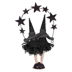 The Conjoined Sisters Figure by Vintage by Crystal is double the mischief and twice the charm, all wrapped into one unforgettable Halloween display. Dressed in a shared black dress, these inseparable sisters sport pointy sparkly black hats that add just the right touch of magic and mystery. Their united stance and mischievous expressions make it clear that whatever they do, they do it together.