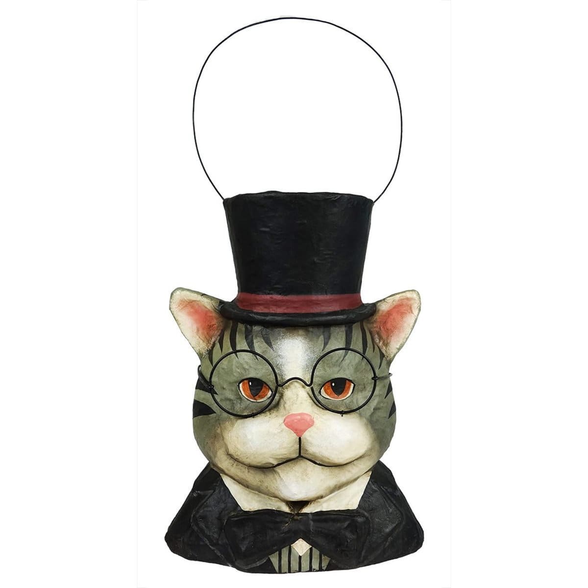 Crafted with vintage charm and a sharp sense of fashion, this debonair cat is perfect for holding wrapped treats, small treasures, or simply stealing the show on your Halloween mantel. He's the kind of guest who always arrives fashionably late, but with impeccable manners—and possibly a pocket watch you can't see.