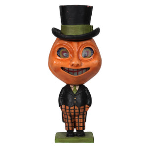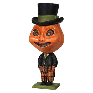 Dashing Peter Pumpkinhead is the sharpest-dressed gourd in town! With his dapper black suit, orange plaid pants, and polished top hat, Peter is turning Halloween into a high-fashion affair. Whether he's attending a spooky soirée or greeting trick-or-treaters with his signature grin, Peter knows how to make an impression.