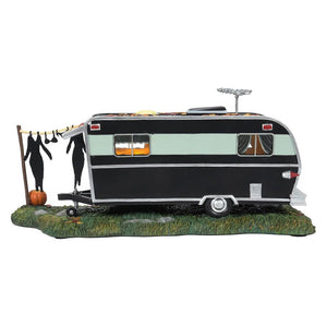 Elvira is a well known Hollywood Icon. So, we hope that this piece from the Dept 56 Elvira collection will ignite your imagination and take you on a journey into the heart of Halloween allure. Introducing the Department 56's "Elvira's Celebrity Trailer," a collectible of unparalleled intrigue from the esteemed Elvira collection. This Halloween statement accessory shall transport you into the realm of the Mistress of the Dark herself, where mischief and enchantment intertwine.
