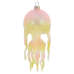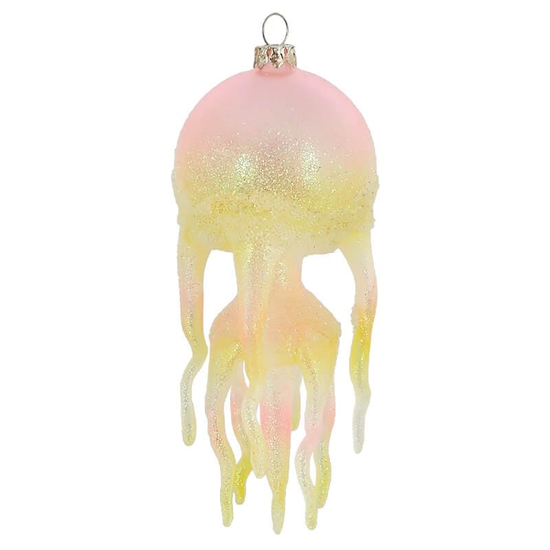 Let this Fantastic Pink/Yellow Jellyfish Ornament from Cody Foster drape its delicate beauty over the branches of your Christmas tree, like a gentle reminder of warm, sunlit oceans. In a blend of soft pink and mellow yellow, this glass ornament captures the essence of underwater elegance and holiday magic. It's a unique and graceful symbol of the holiday season's capacity to merge the wonders of nature with the warmth of home.