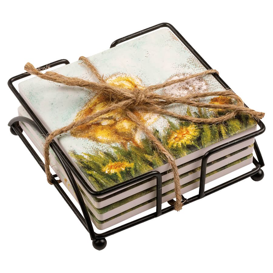 Farm Animal Coaster Set/4 With Coaster Rack