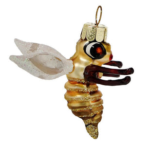 Buzz, buzz! With his legs stretched out in front of him, this funky flying bee looks like he's ready to collect as much pollen as he can! Thick glittering wings will help him get around on his little adventure, but our favorite part are his big expressive bug eyes! Fill a tree with plenty of flower ornaments for this fun flying bee ornament and you will start to feel like a Christmas beekeeper!