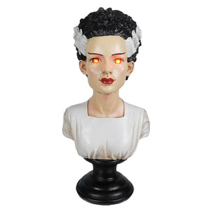 Place her on a table, mantel, or bookcase, and she’ll instantly create an atmosphere straight out of a horror classic. Whether you’re a fan of vintage monster movies or you just enjoy decor that sends a chill down the spine, this Frankenstein’s Bride bust adds that perfect hint of macabre sophistication. She’s versatile enough to fit into Halloween scenes, gothic displays, or year-round spooky collections.