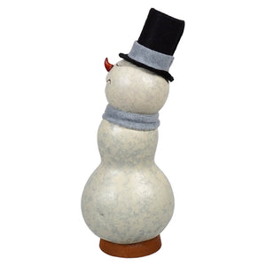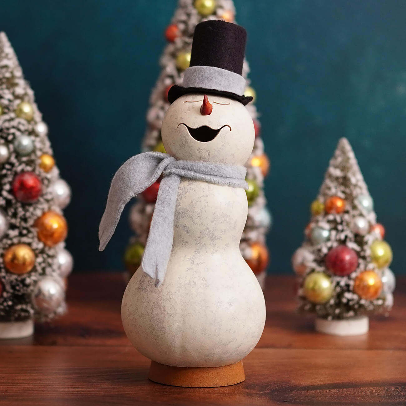 The Frostworth – Small Boy Snowman Gourd by Meadowbrooke Gourds is a charming addition to your holiday décor. Dressed in a powder blue scarf and a top hat accented with a matching stripe, he captures the playful spirit of a winter day in a handcrafted, miniature design.