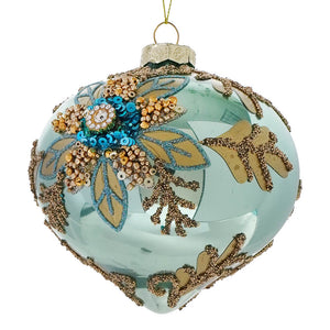 Glass Aqua & Gold Floral Design Onion Ornament