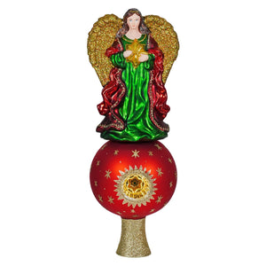 So as you place her on high, let this Glass Finial Angel Treetop With Reflector be a reminder of the serenity and joy of the season. Let her be the final flourish on your tree, a crowning glory that watches over your festivities with a grace and beauty that's as boundless as the night sky.