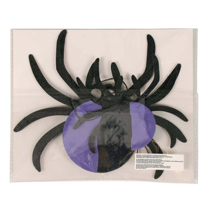 - Halloween paper decor features spider cutouts with black glitter finish and purple accordion paper pieces on both sides for a fun 3D design