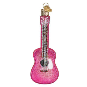 Ready to rock around the Christmas tree, this 5.25-inch Glittered Glam Guitar ornament brings a bit of star power to the season. Perfect for musicians, music lovers, or anyone who appreciates a little extra sparkle, this glass ornament is shaped like a classic acoustic guitar but dressed up in bold, head-turning pink.