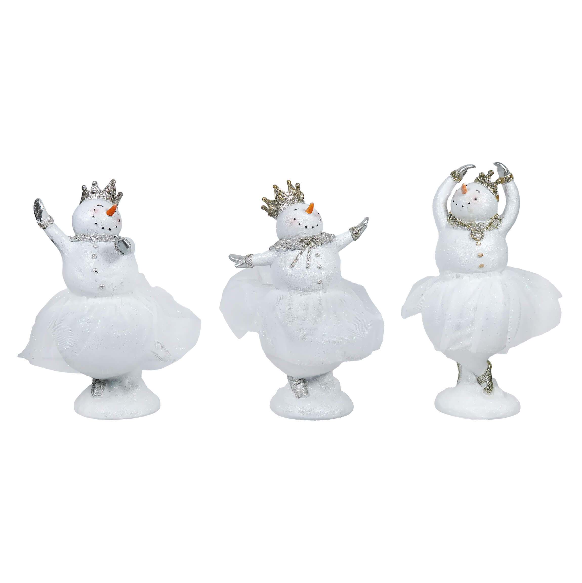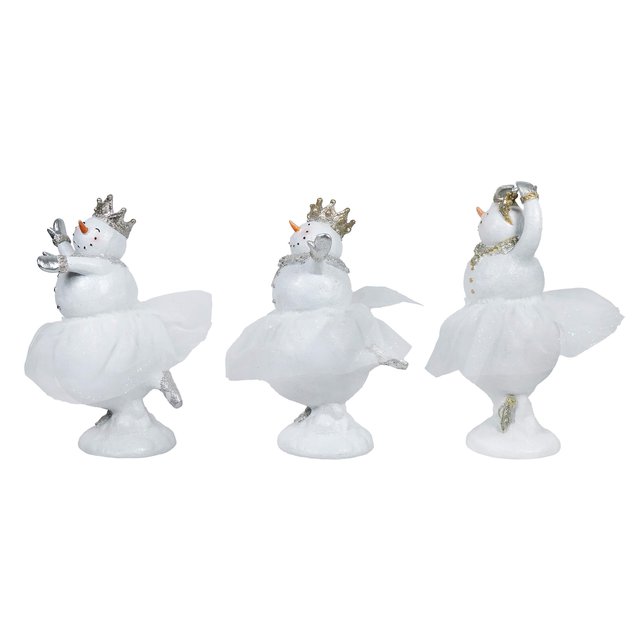 Crafted from resin, these snow ladies are adorned with glitter and feature soft tulle skirts. Their graceful ballet poses, topped with tiny crowns, make them a delightful addition to your seasonal decorations. Each snow lady strikes a different pose, offering variety and interest when displayed together.