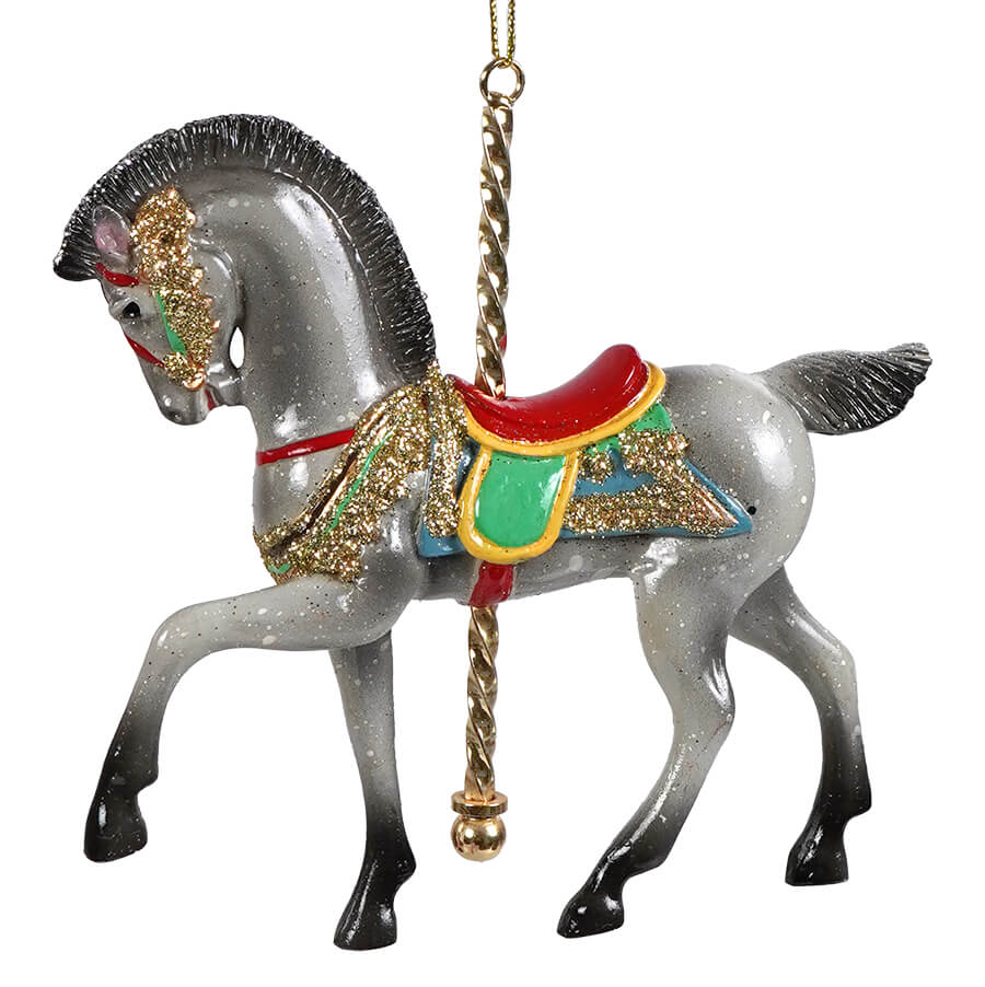 Gray Dapple Prancing Horse Carousel Ornament