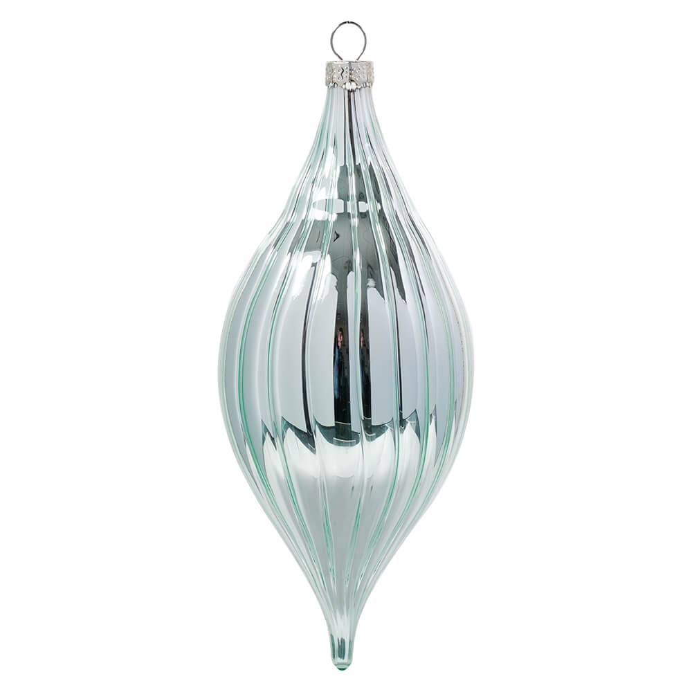 Finials are the perfect way to fill in those big spaces on your tree! So, give you holidays a touch of elegance and grace with the exquisite Green Glass Drop Ornament. This stunning ornament is designed to bring a dash of festive cheer to your Christmas tree or any other space you choose to adorn. Crafted with meticulous attention to detail, this glass ornament showcases a drop shape with a frosty green hue that exudes a serene and enchanting charm.