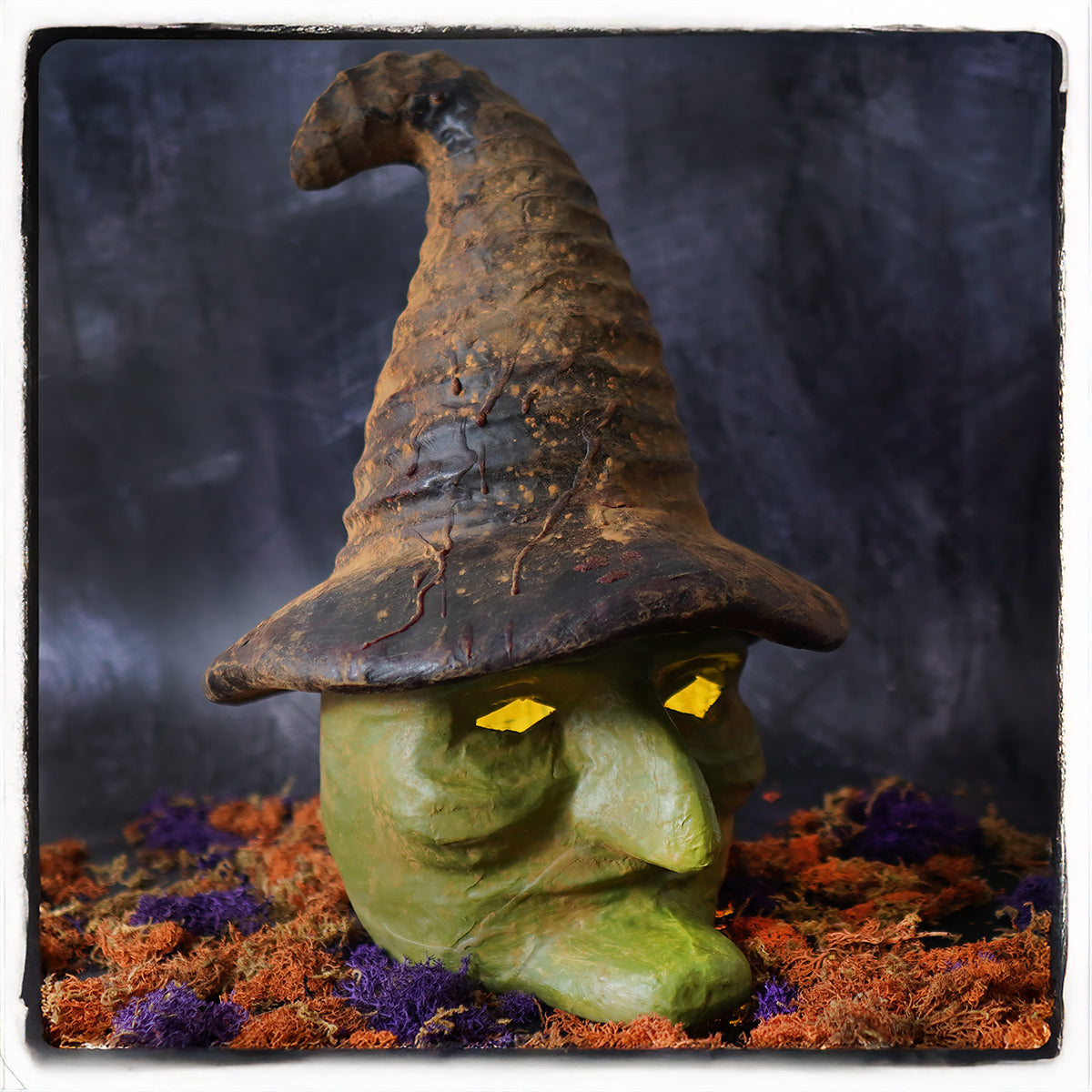 Imagine this captivating creation adorning your mantle, nestled amidst eerie candlelight, or gracing your entryway, welcoming guests with a touch of mystery. Whether you're setting the stage for a bewitching Halloween party or creating an enchanting corner of curiosity in your home, the Green Witch Head is a unique conversation starter for your spellbinding tableau.