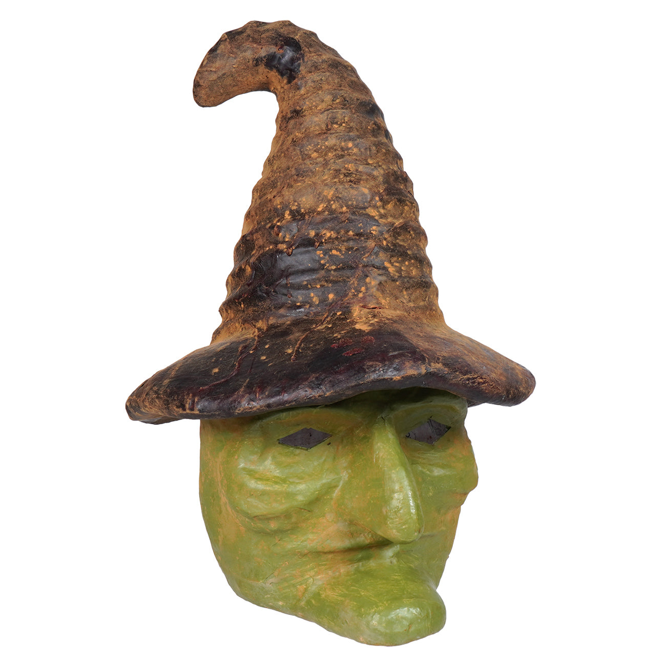 This Green Witch Head will certainly be a bewitching addition to your Halloween decor. It conjures an air of mystique and charm. Standing at a proud 13.5 inches, this remarkable creation captures the essence of a mystical sorceress in all her emerald glory. Made in America, this Green Witch Head is a piece of American artistry that embodies the Halloween spirit.