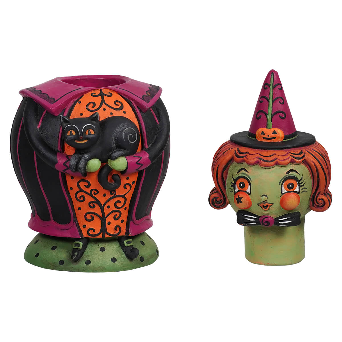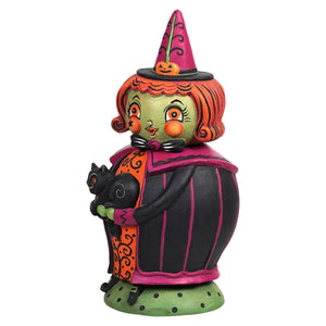 Lift the top, and voilà! A hidden compartment awaits, perfect for stashing candy, trinkets, or tiny potion ingredients (no eye of newt required). Whether you display her solo or among your favorite Johanna Parker collectibles, Hagatha is sure to cast a charming spell on your Halloween setup.