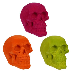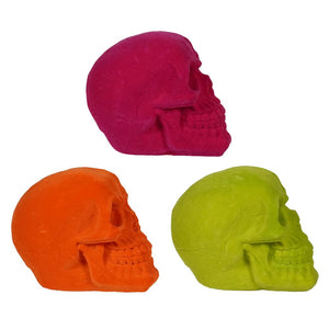 Vibrant and wickedly fun, you can't go wrong with our Halloween Neon Colored Skulls Set. This set of three skulls is all about adding a punch of playfully eerie vibes to your seasonal decor. Crafted from resilient resin and coated in neon flocking, these skulls come in a striking combination of orange, green, and magenta.