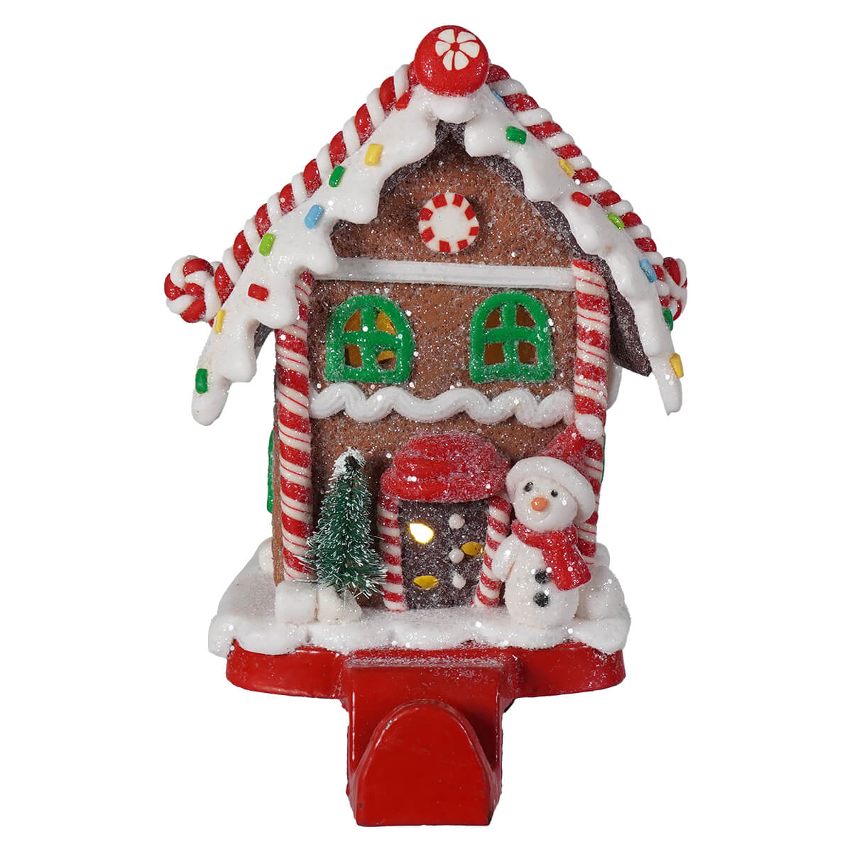 Hand-Crafted LED Lighted Gingerbread Candy House Stocking Hanger