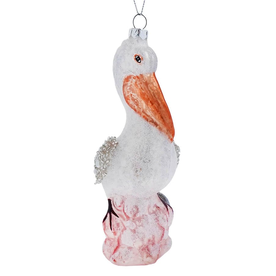 Perfect for a bird, sea theme or Christmas tree, you can adorn your tree with a coastal style this year, by including the Hand Painted Pelican Ornament. Crafted with care, this glass ornament offers a fresh and unique twist to holiday decorations. Standing tall at 6.5 inches, the pelican boasts a remarkable presence with its serene and lifelike expression.