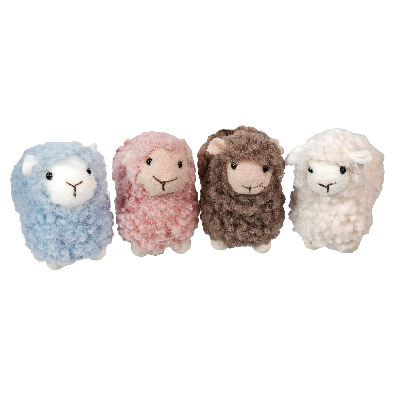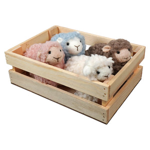 Handcrafted Multicolored Fluffy Little Lambs In Wood Crate Set/4