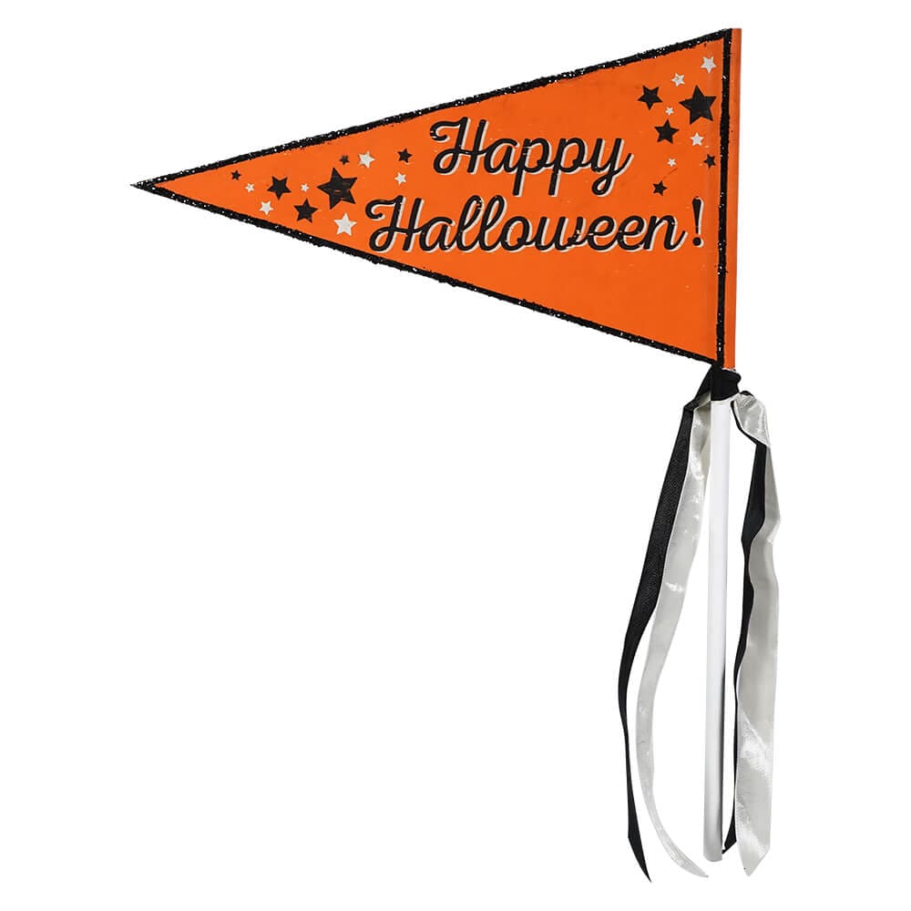 Get ready to celebrate the spookiest time of year with our Happy Halloween Pennant Flag! This festive decoration is sure to add a creepy and fun touch to any room. The eye-catching black and orange color scheme combined with the playful black and white stars of many sizes will bring the perfect level of fun to your home this October. Add this flag with its cheerful message of “Happy Halloween” to a wreath at your front door, welcoming guests when they arrive! Show off your love of the holiday by displaying this pennant flag anywhere in your home that could use some spooky spirit, like a vase filled with black flowers or at the top of your Halloween tree! Great for events or just to show off your love for all things spooky, this Happy Halloween Pennant Flag makes a perfect finishing touch!
