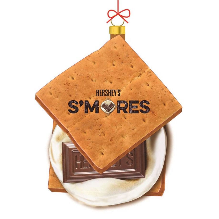 Memories! They say that food can conjure memories by just smelling the odor emitted by the food. That strong recollection is how we felt when we saw this Hershey's S'mores glass ornament, since immediately we thought of family trips making s'mores over a campfire! Graham crackers, marshmallow and Hershey's chocolate squares all melted together once the marshmallow has been warmed on a stick over a fire... What more can you want! Such a fun ornament the entire family can enjoy hanging on the tree!