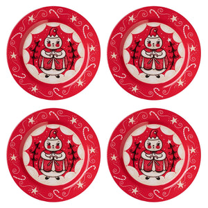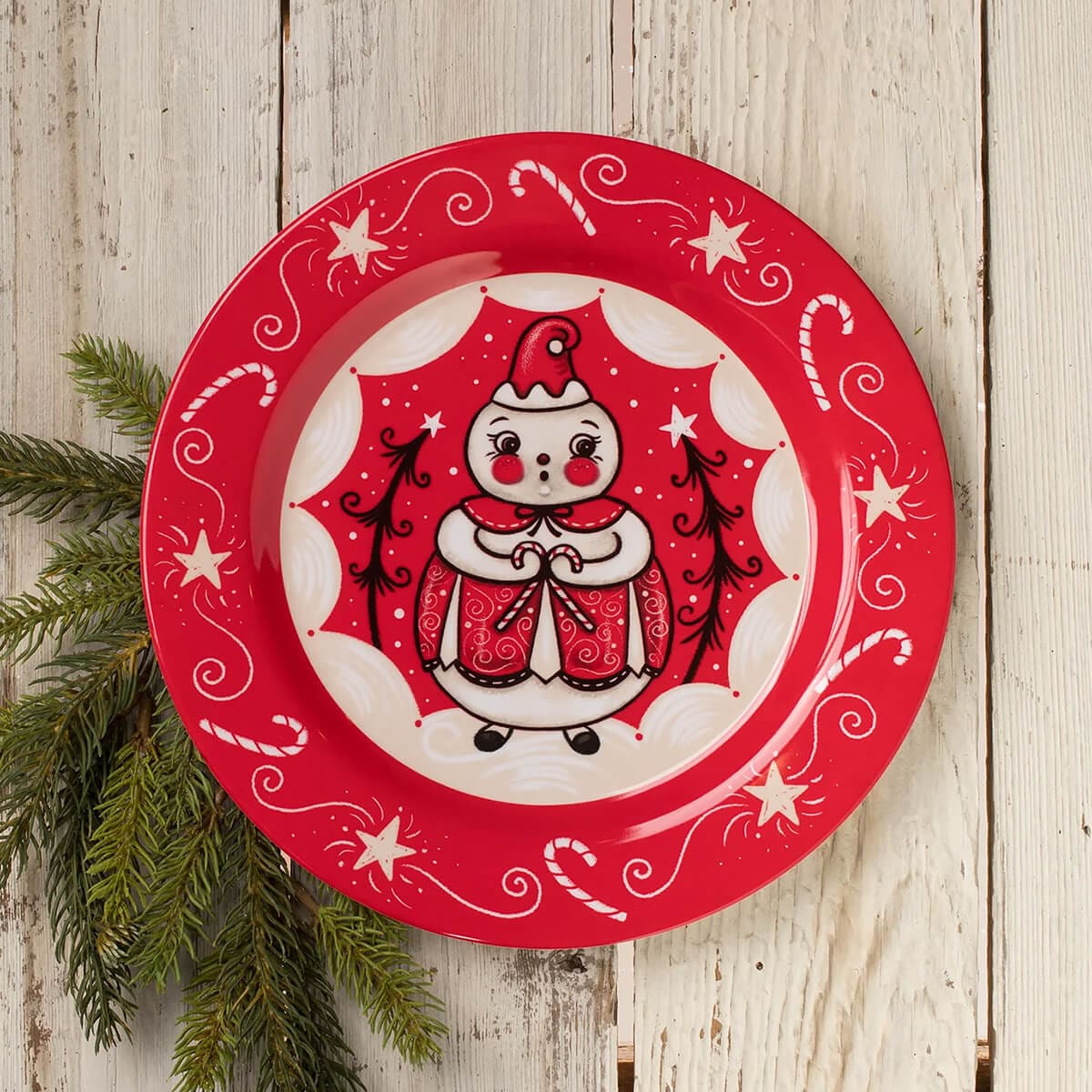 The rim of each plate is adorned with a delightful pattern of candy canes, stars, and intricate filigree, adding a touch of elegance to your holiday table setting. At the center of each plate stands the adorable Double Cane Candice, donning a Santa hat and a festive red dress, holds double-crossed candy canes with a cheery smile. She becomes the heart of your holiday table, radiating happiness and joy.