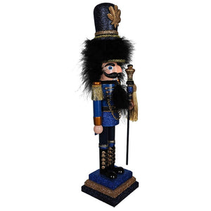 Hollywood Blue & Gold Nutcracker Soldier Holding Staff