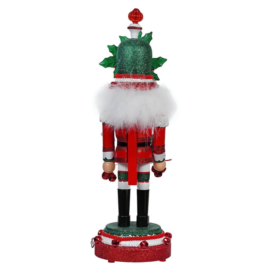 The Hollywood Nutcrackers™ Wind-Up Musical Nutcracker is a stunning holiday masterpiece that effortlessly combines traditional Christmas decor, like holly and bells with a touch of Hollywood glamour. Standing tall at an impressive 18 inches and measuring 5.5 inches in width and depth, this enchanting nutcracker embodies the spirit of the season in every detail.