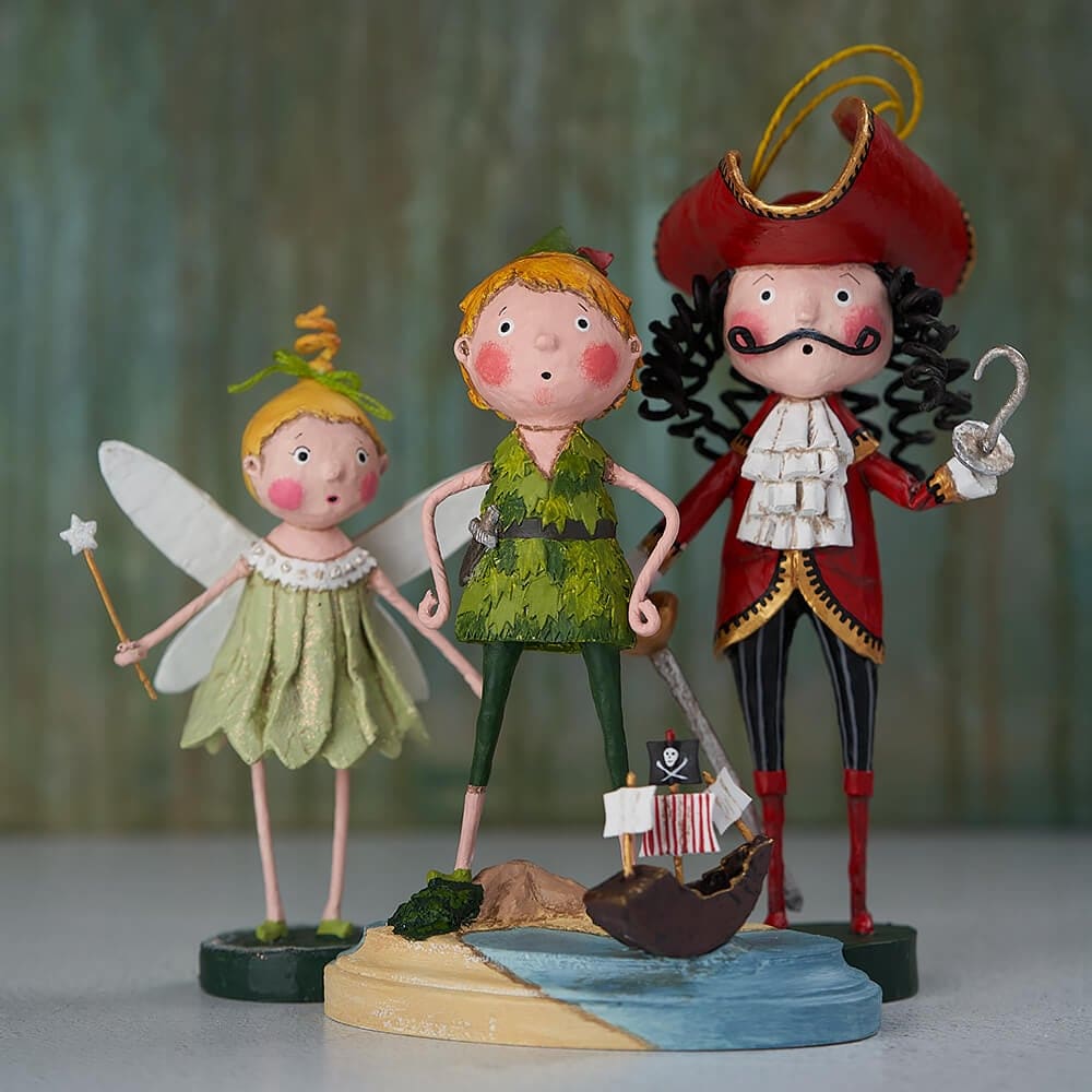 Ye see, time be chasin' after all of us, even a pirate as feared as Captain Hook. And as ye collect the whole set from Lori Mitchell's Peter Pan collection, ye'll find yerself transported to the world of Neverland, where fairies sprinkle fairy dust, pirates sail the high seas, and happy thoughts lead to grand adventures.