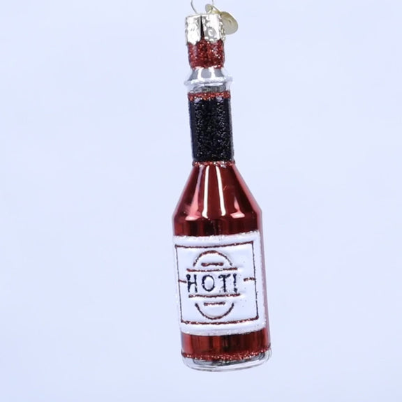 Hot sauce is all the rage, since everyone likes things a little spicy! A fun ornament to give to Mexican food enthusiasts, someone that does a Cinco de Mayo tree or just likes to eat! Humans have used hot sauces to flavor foods for thousands of years. The first commercially-offered American hot sauce was branded in 1807. Today, the spicy condiment is available in hundreds of varieties and celebrated with spicy food eating contests around the globe and included in millions of recipes. Similar to Tabasco sauce, this glass ornament has that classic look that hot sauce lovers instantly recognize.