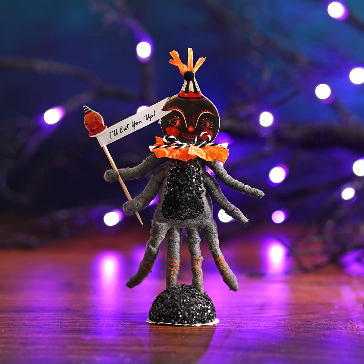 The Hungry Spider Figure by Vintage by Crystal & Johanna Parker is crawling into the spotlight with six arms ready for action. His wide-eyed stare and bold orange neck ruff make him a standout character that’s equal parts spooky and playful. One look and you’ll know he’s hungry for more than just Halloween candy.