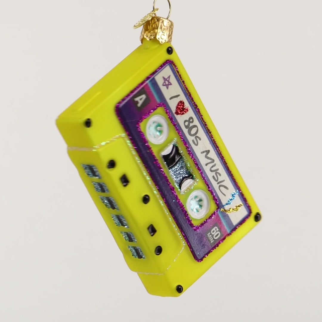 Crafted in classic Old World Christmas style, this ornament brings a pop of color and personality to your holiday tree. The shiny finish captures the glow of tinsel and lights, making it stand out just like those unforgettable 80’s tracks. It’s the perfect blend of kitsch and cool, ideal for anyone who still believes nothing beats a good mixtape.