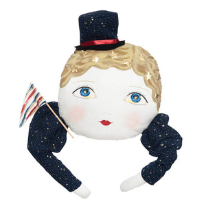Give your patriotic décor a dazzling twist with the Indy Zombinaland Decorative Pillow by Tracy Scheff for Gallerie II! Bursting with independent star-spangled charm, this uniquely designed pillow features a striking woman’s head adorned with shimmering stars in her hair and a bold blue-and-gold top hat. With matching arms extending outward—one proudly holding a flag—she’s the embodiment of festive flair, ready to bring a little extra sparkle to your Independence Day celebrations.