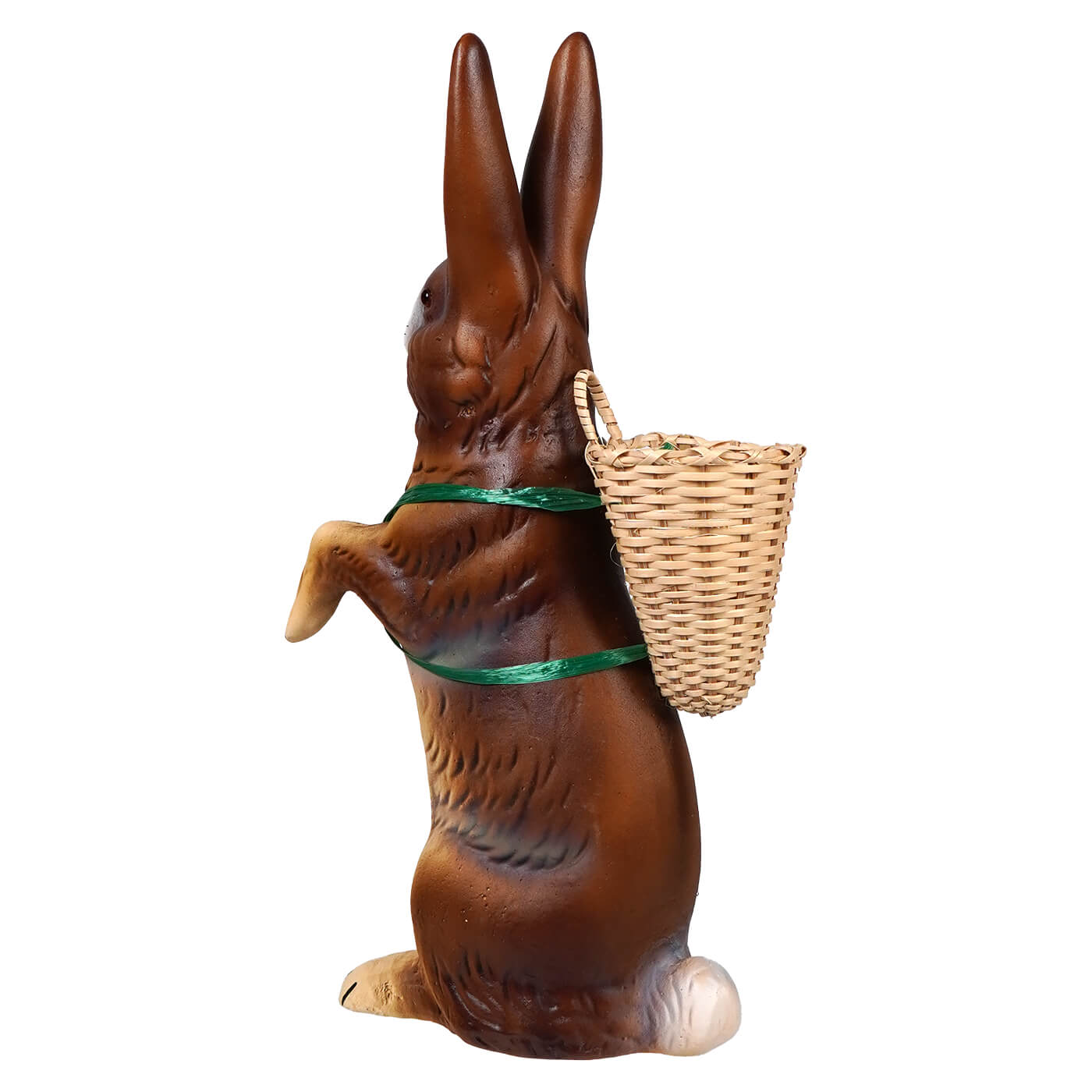 Crafted with traditional paper mâché techniques in Germany, this collectible figure showcases exquisite artistry, from its rich brown fur to the finely textured wicker basket. The hand-applied finish enhances its vintage appeal, making it feel like a cherished heirloom passed down through generations. Every detail, from its perked-up ears to its poised stance, exudes personality and Easter charm.