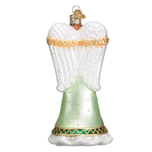 Historically, artisans would model angel ornaments on the cherubic faces of their daughters, imagining them as the most beautiful angels. This Irish Angel carries the luck of the Irish with her, symbolized by the trio of leaves on her dress, making her a beacon of good fortune and a harbinger of joy.